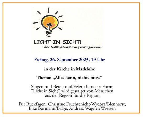 Das “Licht in Sicht!” - Team denkt derweil über ein neues Projekt Richtung Freiluftgottesdienst im Spätsommer nach. Mit Abstand und Hoffnung auf „richtigen Gesang“.